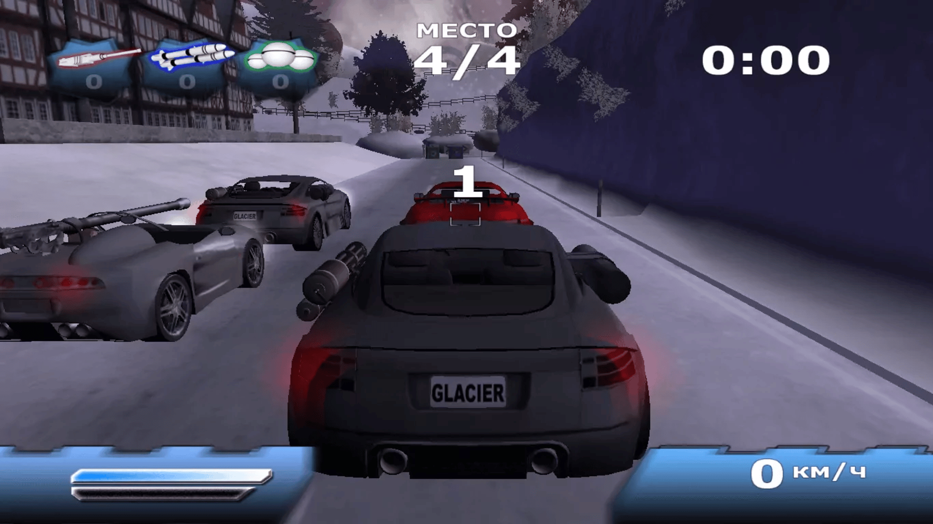 There's only one rule: "He who finishes first is victorious." The stakes have been raised and more dangerous frozen race locations have been found in Glacier 2. A fresh group of contenders have entered this alpine race with faster and stronger vehicles equipped with shocking new weapons. Watch out for treacherous cliffs, falling rocks, and icy hairpin turns as racers careen down the mountains. But it takes more to be #1. Aim your rockets, ready your machine guns, and deploy mines to battle your opponents because in Glacier 2, there’s only one rule: “He who finishes first is victorious.” Features • Over the top combat racing action • 18 freezing levels full of traps, cliffs, mines, falling rocks, canyons, and spectacular jumps • Choose from 7 super rides, each with different armor, weapon, and driving abiilities • Beef cars up with various deadly weapons such as rockets, machine guns, shotguns, and mines • Compatible with the Wii Steering Wheel for intuitive controls and a realistic driving feel