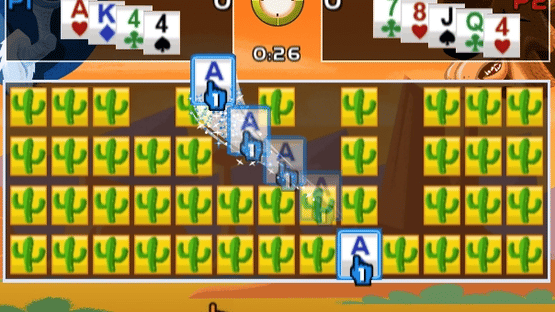 Battle Poker—Explosive family fun for up to four players. Battle Poker is a family-friendly card game with up to four players battling against the clock to make the best five-card hand possible. Battles are played across multiple rounds, with points scored for each round based on the quality of the hand. Each player uses a Wii Remote controller to point and click on a standard deck of cards laid across the screen. The first click flips the card over, at which point it can be grabbed by anyone else. You've got to have fast fingers and eyes if you're to grab the cards you need before someone else snatches them from you.