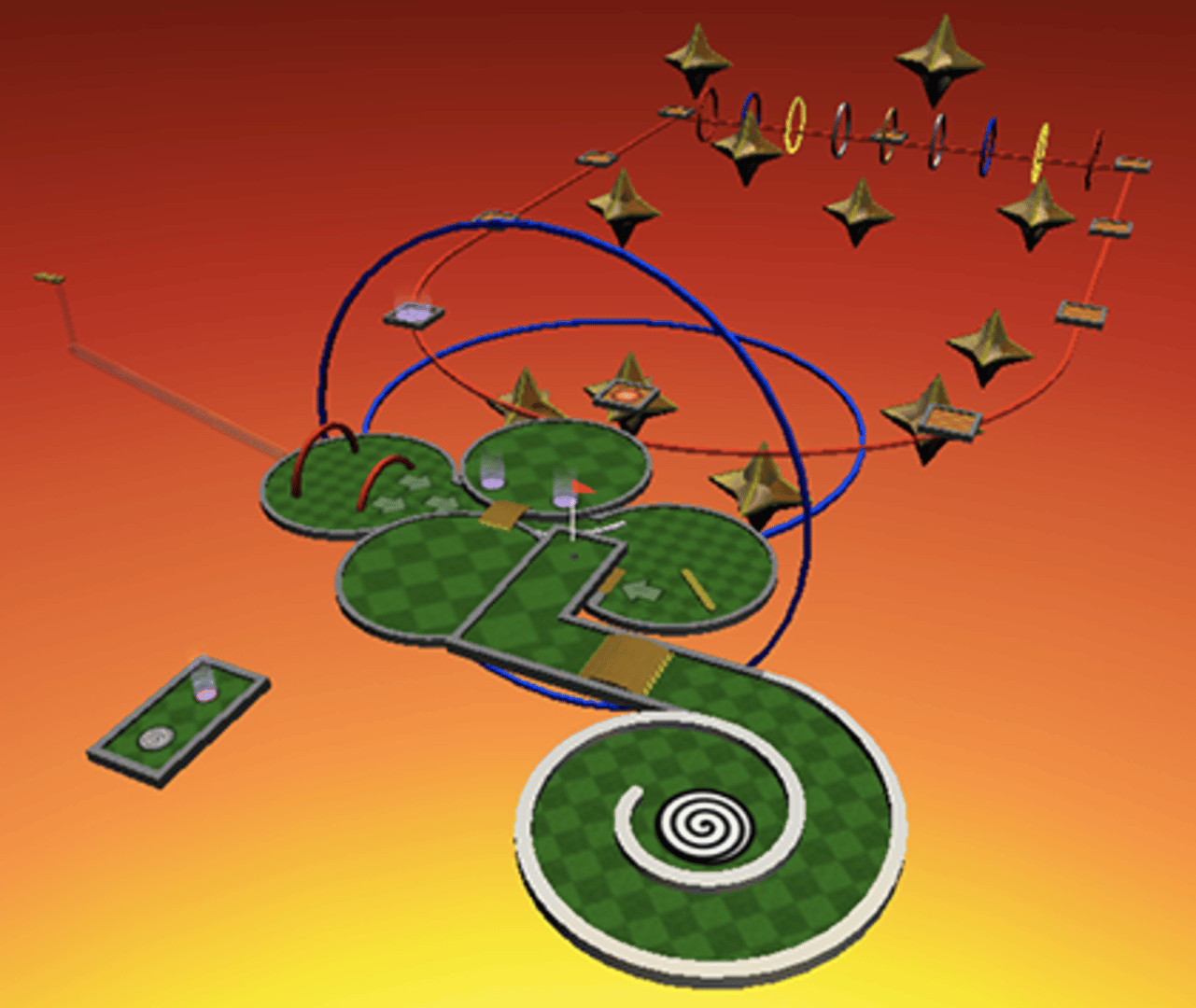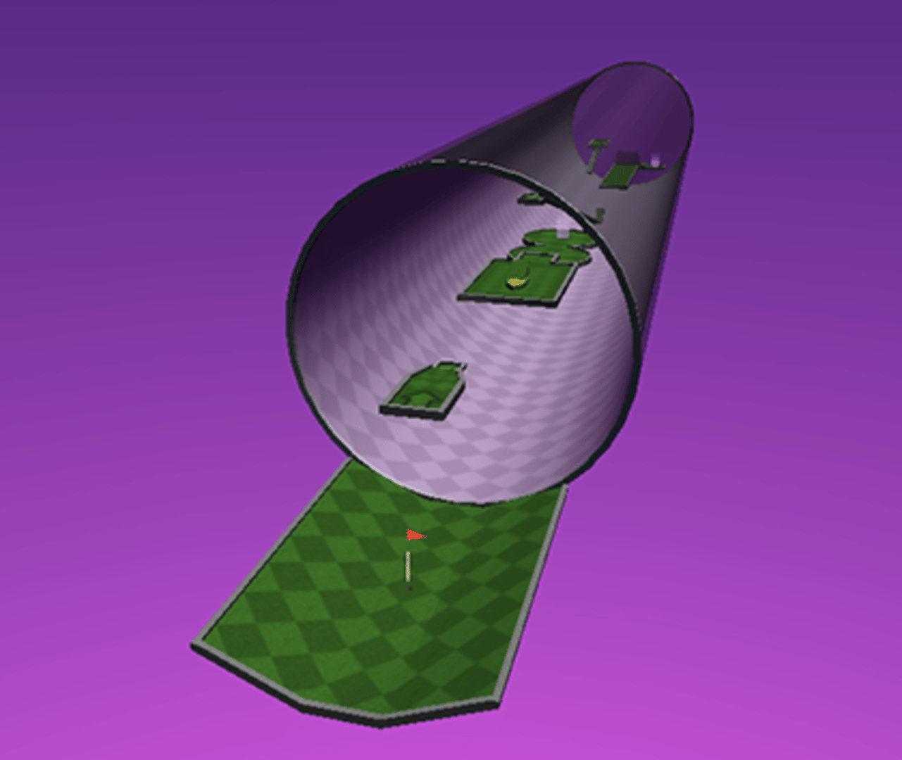 Neverputt is a hot-seat multi-player miniature golf game for 1 to 4 players. The 18-hole course takes advantage of all the elements that challenge Neverball players, including moving platforms and barriers, teleporters, ramps, and drop-offs. A simple putting interface and golf scoring system have been added.