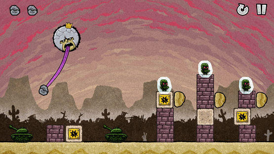 End the world in a unique skill based physics puzzle! King Oddball swings a boulder back and forth by its tongue.