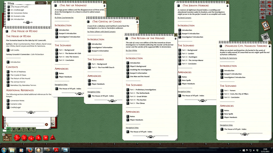 Five Scenarios Based on H.P. Lovecraft Tales converted for play on the Fantasy Grounds virtual tabletop.By David Conyers, Glyn White, Brian Courtemanche, Peter Gilham, and Brian M. Sammons.