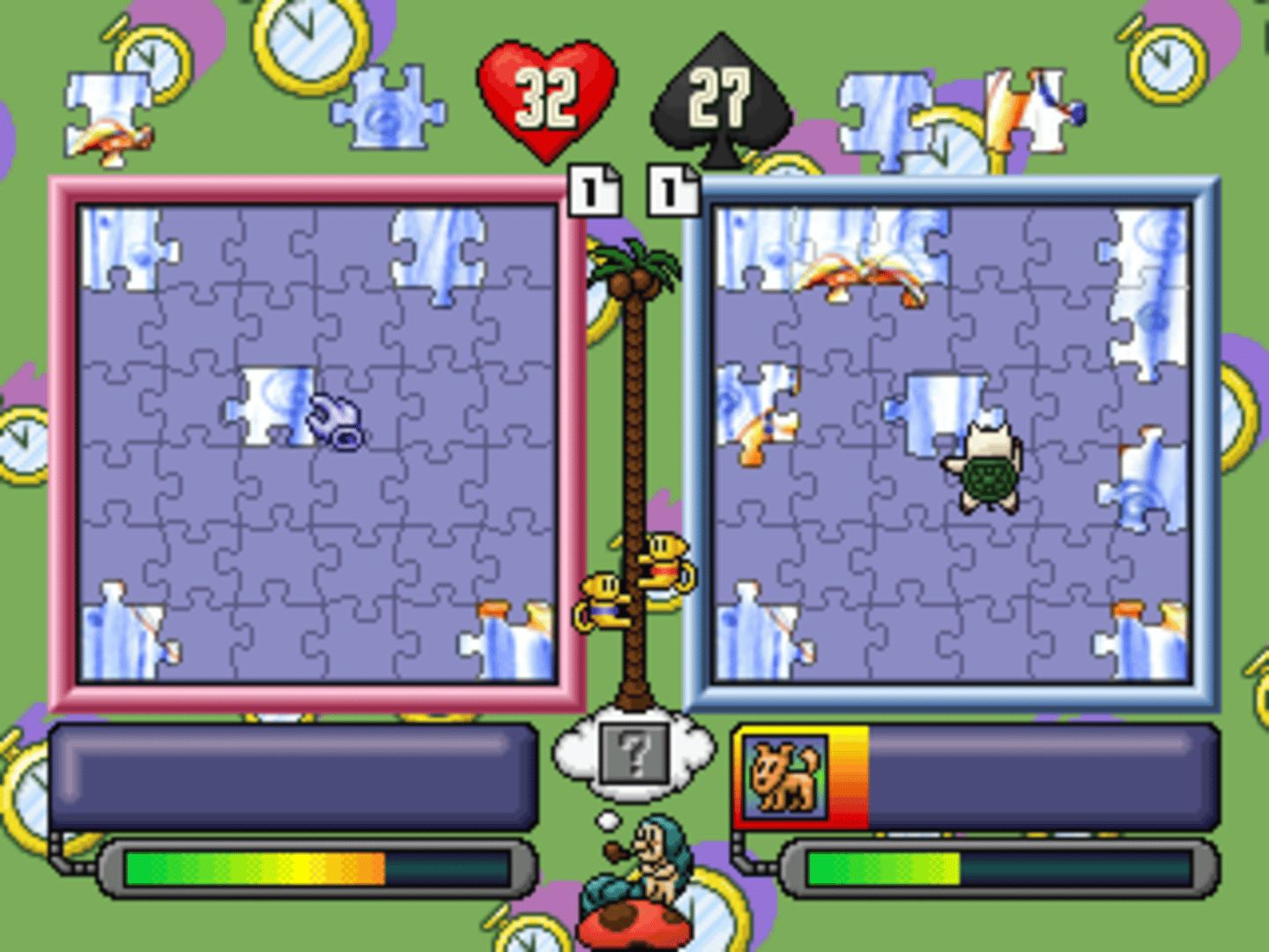 An anime-esque jigsaw puzzle game with an "Alice in Wonderland" theme.