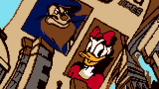 Released in conjunction with 3D versions on consoles, Donald Duck's adventure on the Game Boy Color is a traditional side-scrolling platformer. The evil magician Merlock has kidnapped Duckburg Times reporter Daisy Duck. Donald Duck turns to Gyro Gearloose for help, who suggests using his latest invention: a powerful teleporter. Unfortunately, Merlock learns of their plans and steals the blueprints to the device. Now Gyro uses the unfinished machine to teleport Donald to various locations, where he is to find the parts of the blueprints, so he may confront Merlock and rescue Daisy.