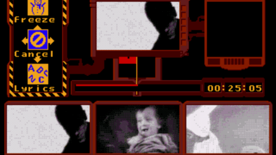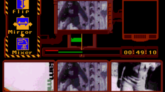 The first of Digital Pictures' "Make My Video" line has you "editing" three of C + C Music Factory's most famous songs - "Gonna Make You Sweat," "Things That Make You Go Hmm..." and "Here We Go Let's Rock & Roll." The plot puts you inside the music factory of the game's name, where two linemen sweat and toil under the oppressive thumb of a wheelchair-bound corporate executive. Video discs literally roll down an assembly line while C + C record their sounds behind three closed doors. You are asked to help out in editing these videos, appease the corporate masters, and lift the burden from everyone.
