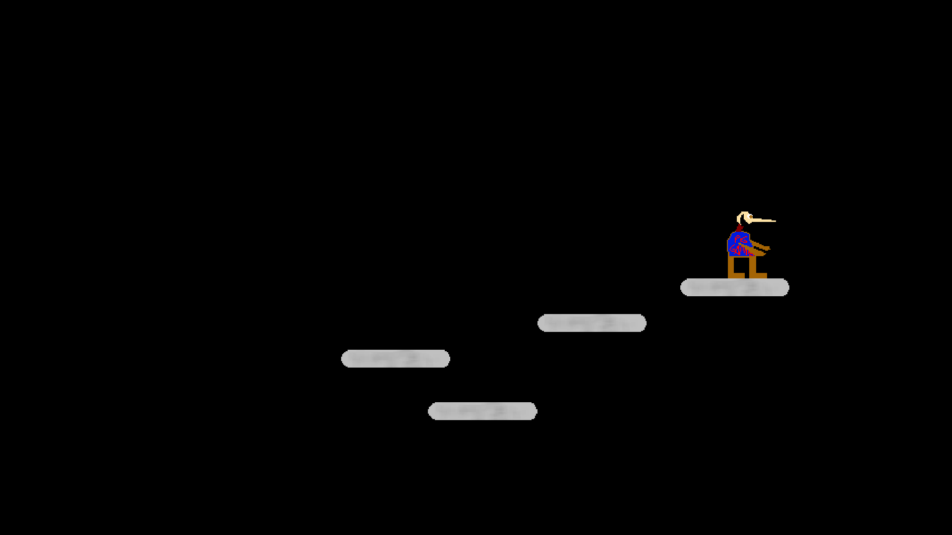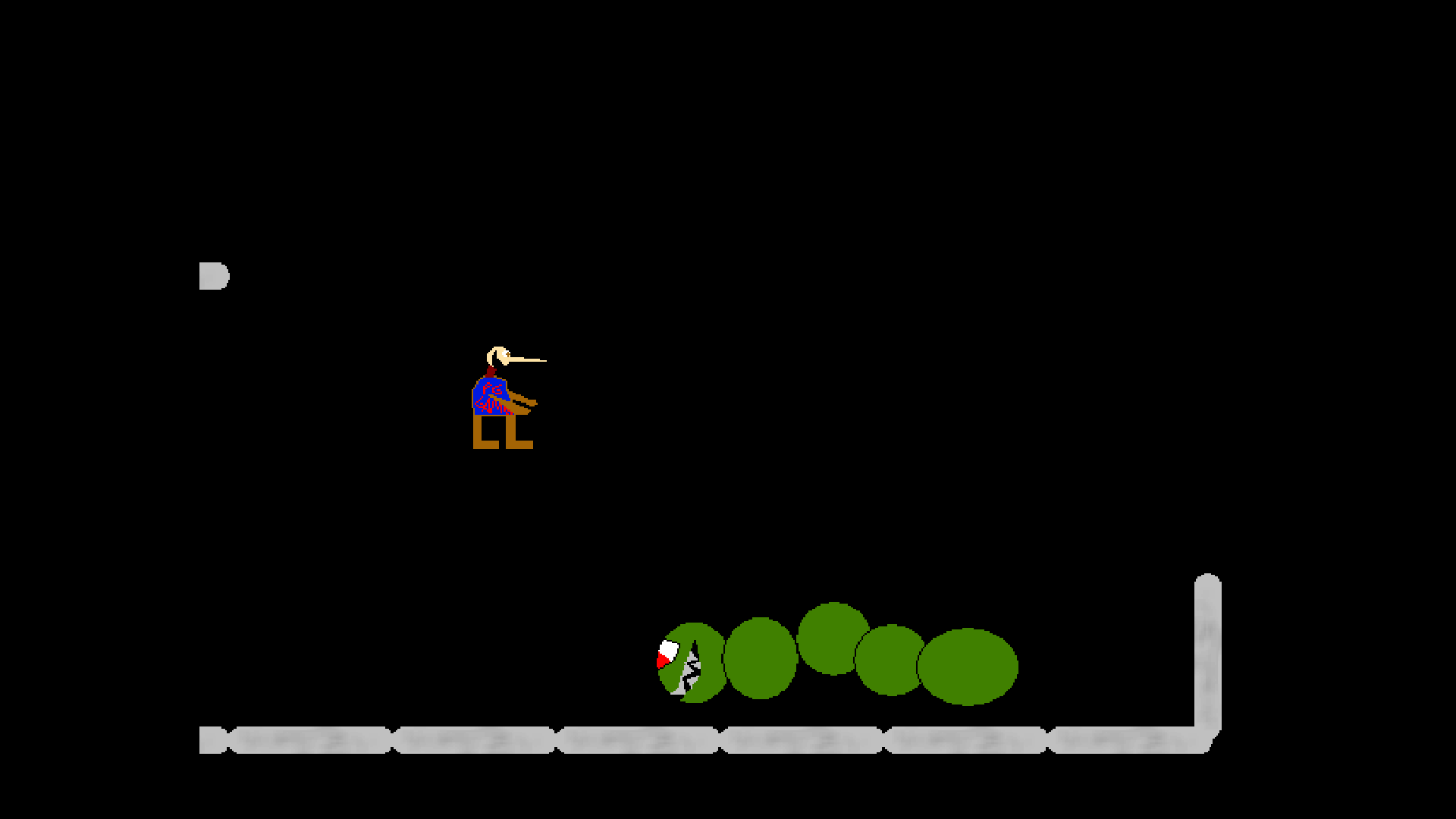 Johnny is a platforming game by Kim Okkerstrøm, aka Kimberly Kubus and Sparlatacus, under his label of PG Games. Players control the titular Johnny, an always-smiling scraggly-toothed guy with a long, pointy nose. This nose actually factors into the gameplay, as it can be used to catch onto the edge of platforms to save Johnny from falling into a pit. Johnny's only means of defense against his enemies is to fire a projectile, which moves in the direction the arrow key is pressed (for instance, it will travel up when jumping).