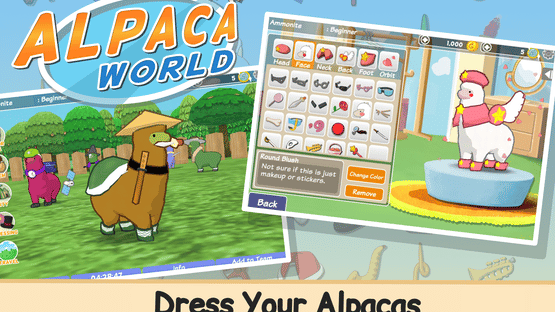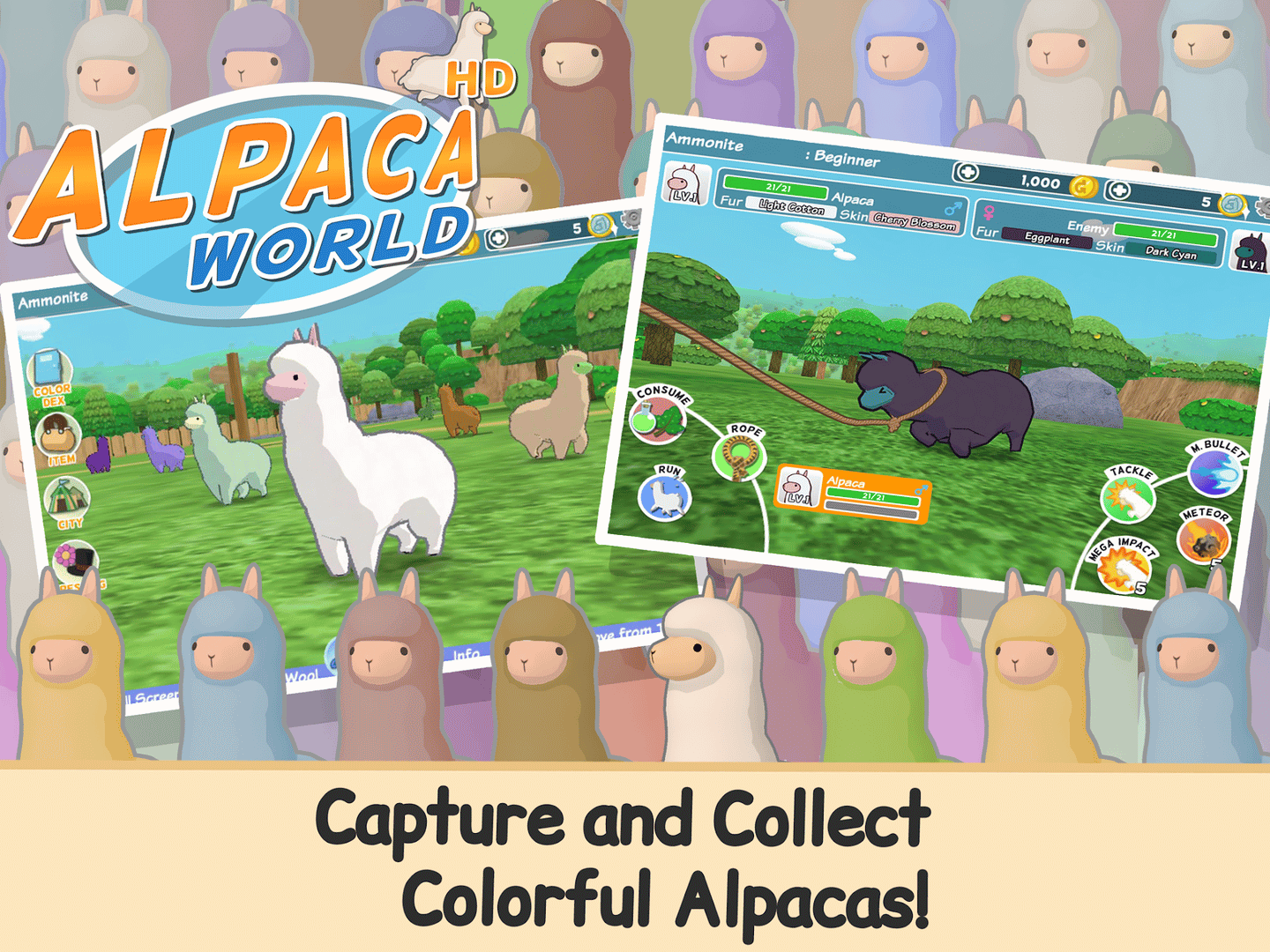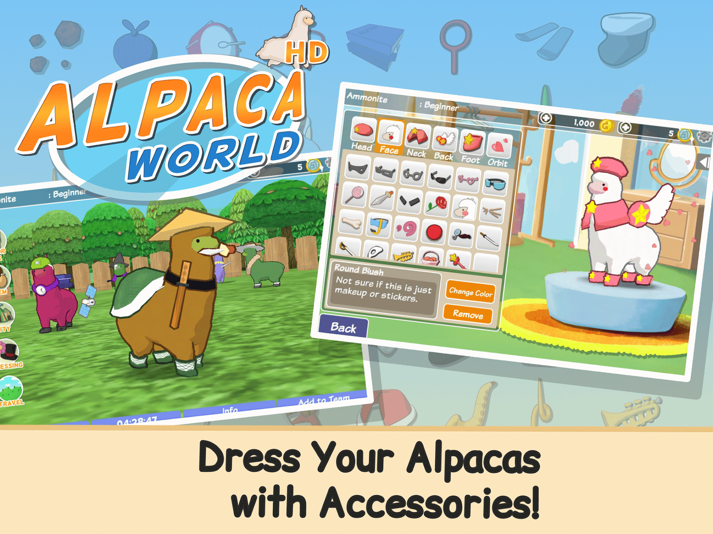 You are now an owner of an alpaca farm. Over hundred colors of alpacas are waiting for you. Let's train them, dress them and try to capture more different alpacas that will let you experience unlimited cuteness.