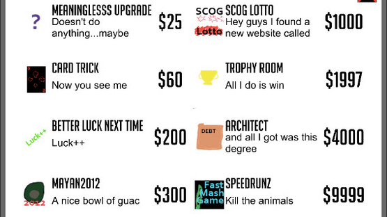 Live your wildest dreams by splurging on insane amounts of cash you wouldn't have in real life. Play for random number generated loot that is a reflection of the meaningless nature of this game and everything surrounding it.