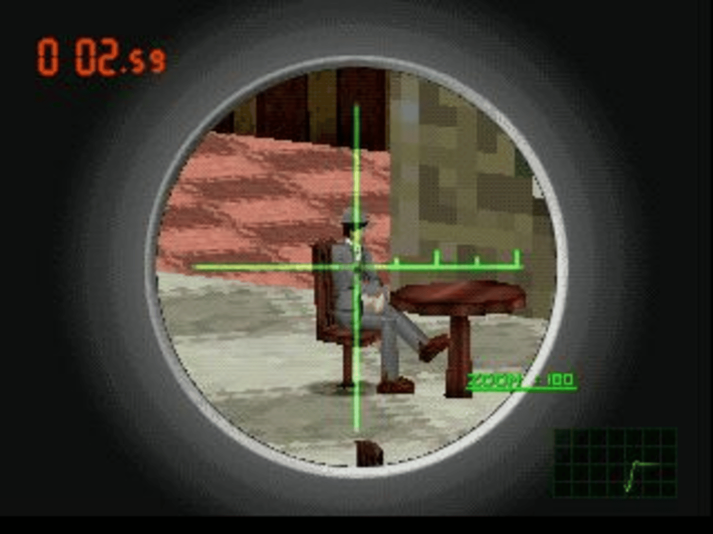 An entry in the Simple 1500 series for PlayStation where players are challenged to snipe targets. A number of missions will give players the ability to choose their sniping position and the time of day they choose to execute their hit. Despite being released as a Japan-exclusive, the game would receive a sequel with an official English release; 2004's The Sniper 2 for the PlayStation 2.