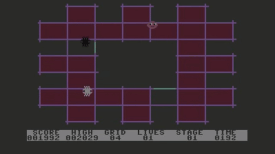 C64 game where the player fills in the grid while avoiding the black and white spiders.