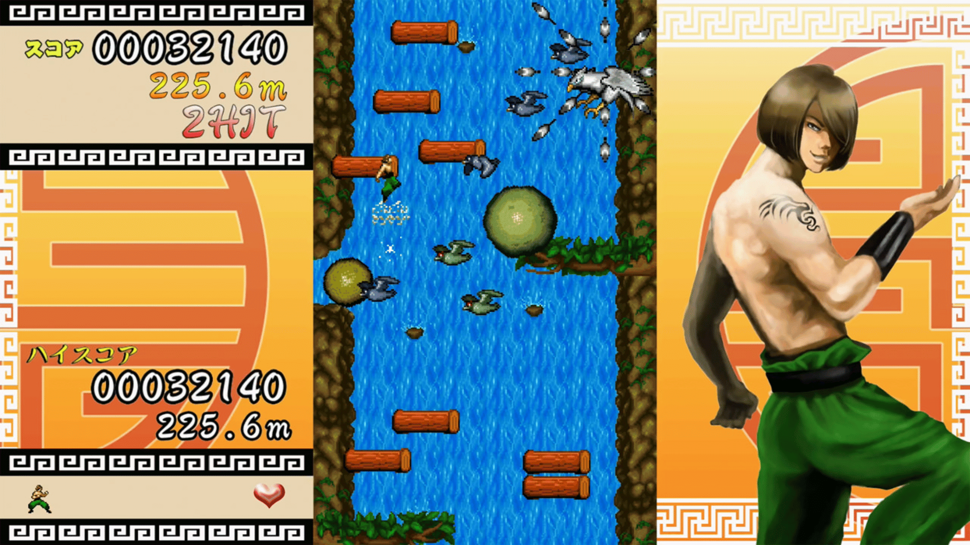 Deep in the hidden area, there was a huge waterfall that has been said to be a legendary training ground since ancient times. Now three fighters challenge this waterfall, which is said to be infinitely high! This game is a 2D jump action game where you jump from falling logs and rocks to the height of the waterfall. Stomp on birds that get in your way from above to defeat them! Avoid the attacks of the boss bird and keep climbing the endless waterfall!