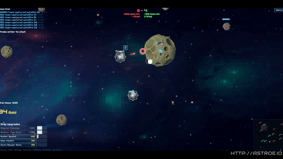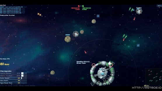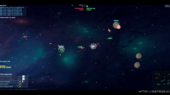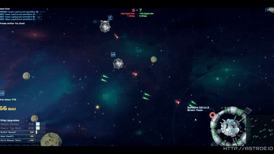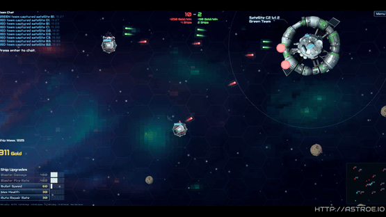 Multiplayer player 2D space battle. Collect gold, team up and take over the other team's satellites.