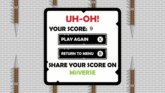 Spikey Walls is a game where players avoid falling into spikes by tapping the a-button.