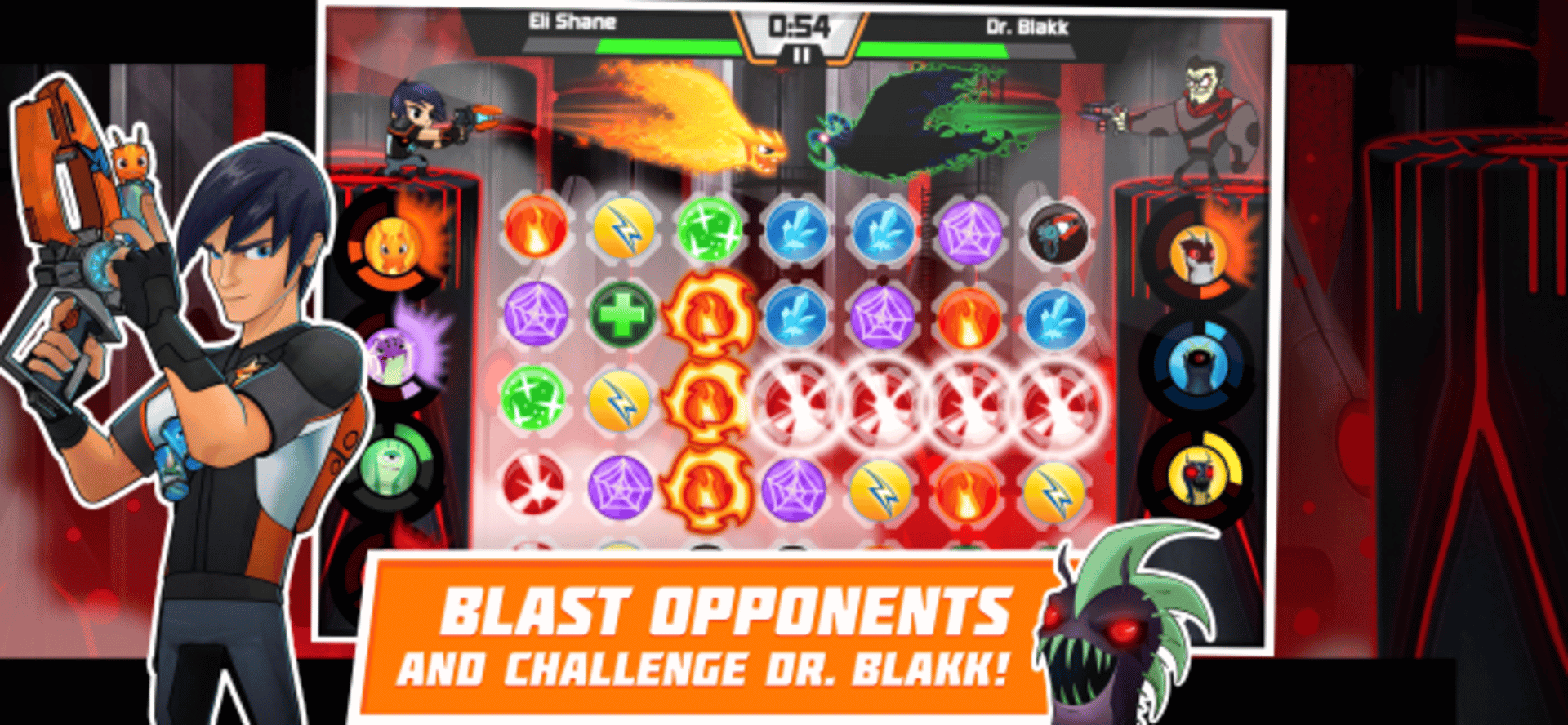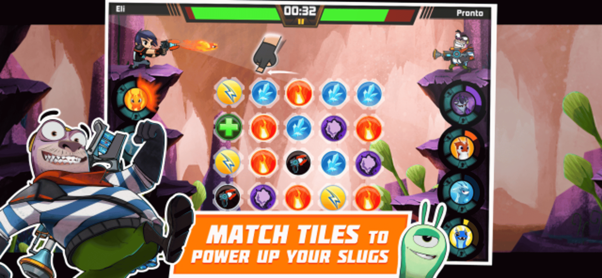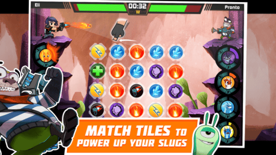 Slug it Out is a mobile game based on the Slugterra animated TV series. The core mechanic is match-3 style fast paced action to match tiles across the board.