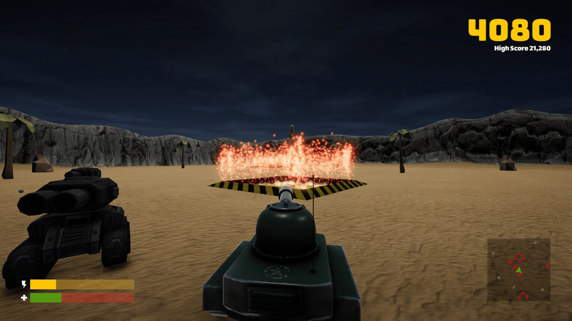 Tank Warz! is an arcade shooter with a modern look and feel, featuring fast paced tank battles with enemies that wish to prevent you from fulfilling your mission. Your mission is simple: Destroy the enemy Spawn Portals to stop the evil tank invasion whilst battling your way through different terrains and big bosses. Featuring pickup items such as Health Packs and "Insta-Bombs" (dropped at random when an enemy tank is destroyed) to help (or sometimes hinder!) you in your mission. Additionally featuring an energetic rock backing track and an old-school look, Tank Warz! will engross you in hours of arcade fun.