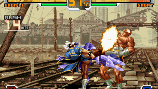 SNK vs. Capcom: SVC Chaos primarily utilizes the command system of The King of Fighters series, incorporating light/strong kicks, punches, cancels and charging attacks. Unlike its predecessor, Capcom vs. SNK 2, this game lacks both air guards and a "groove system", instead focusing on quicker gameplay. Characters are provided with a basic 3-level bar system for executing super-special attacks with basic filling options attributed to strikes and damage. Additionally, the sprites from the various series received new models and some special effects were changed in the command lists (for example, the player cannot increase the damage of the Zujou Sashi used by Choi Bounge by tapping the buttons anymore).