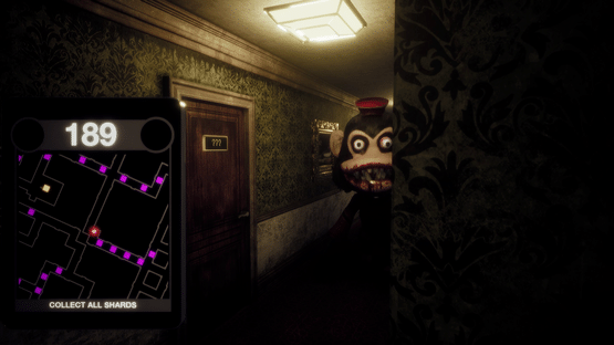 A first-person horror game by indie developer Glowstick Games. The player must run through a maze of corridors, collecting shards and avoiding giant knife-wielding toy monkeys, in a decidedly Pac-Man-like fashion.