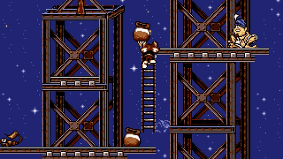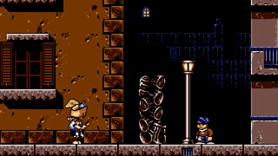 Titus the Fox: To Marrakech and Back was released in 1992. The main character of the game is a fox. His beloved Suzy has been kidnapped on the other side of the Sahara desert, and to get her back he has to advance through 15 levels. Player's goal is to avoid dogs, construction workers, giant bees and similar creatures. The player can fight back by throwing objects back at them, or - most notably - picking walking enemies up from behind and throwing them as projectiles at other obstacles. The game features a code-based "saving" system, with the codes calculated uniquely for each machine.