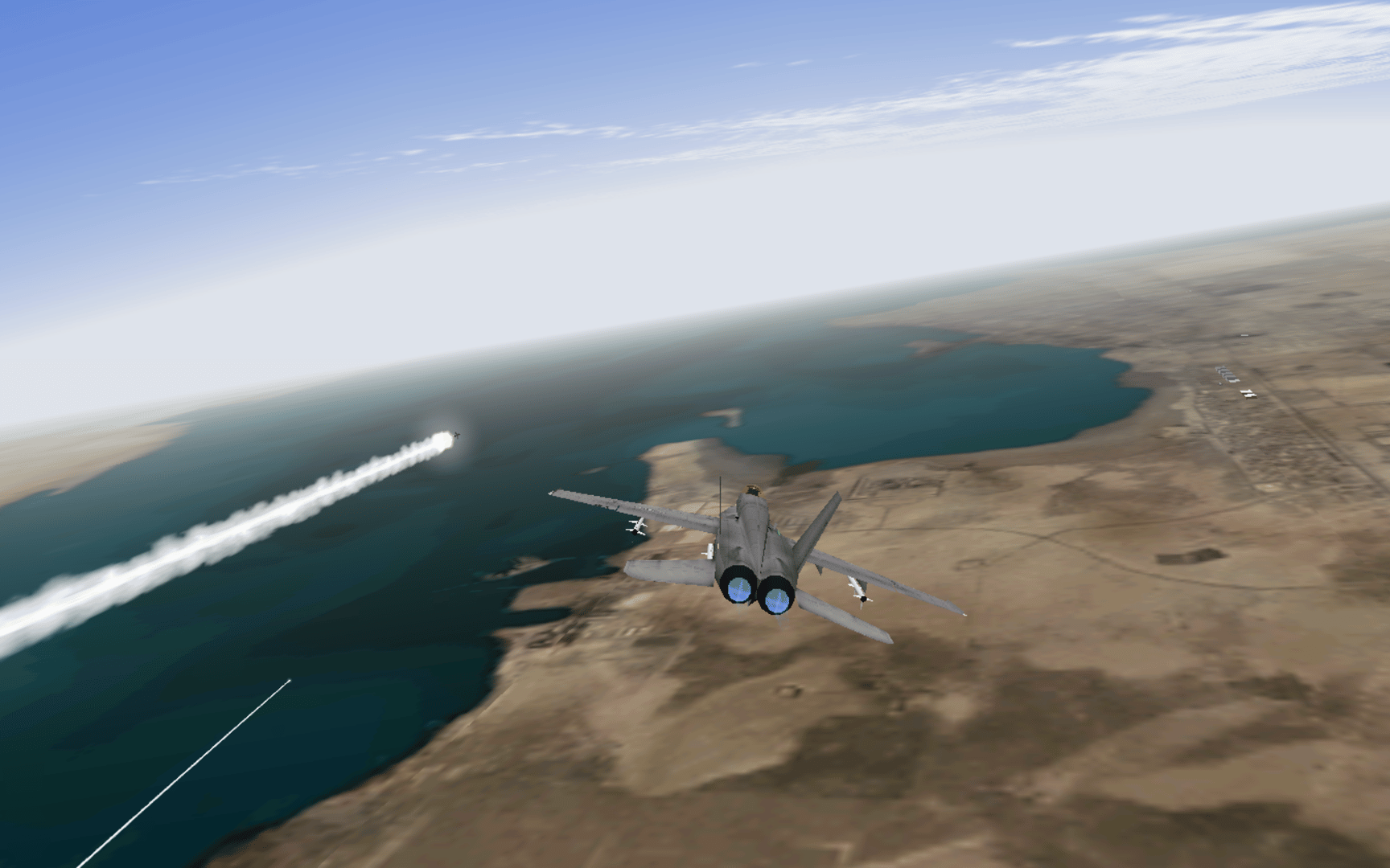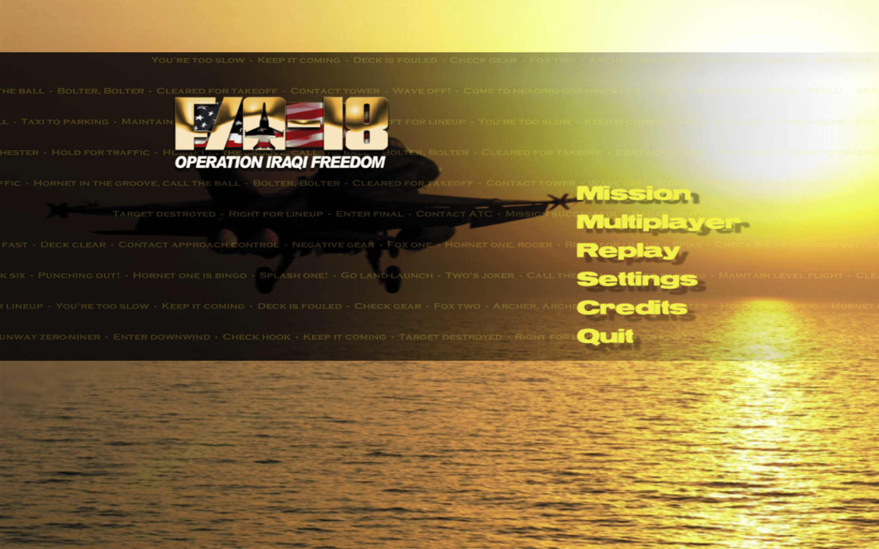 F/A-18 Operation Iraqi Freedom or Operation Desert Storm is the successor to F/A-18 Hornet Korea. It features a campaign with 27 unrelated missions set in the Gulf region. Typical examples are the bombing of ground targets or escort missions. On most missions the player gets help by other aircraft including the famous A-10 Warthog. The game strongly focuses on the realistic simulation of the F/A-18 Hornet so the player has to work with a complex set of key combinations to control it. Twelve tutorial missions are designed to introduce the player step by step to the aircraft. The game also features an editor to create custom missions.