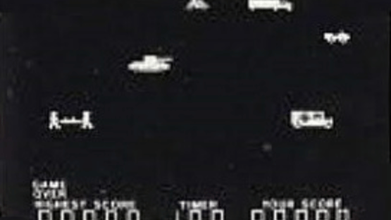 A black and white arcade game released by Project Support Engineering in 1977. The arcade cabinet is notable for having a built-in bazooka gun that the player uses while playing the game.