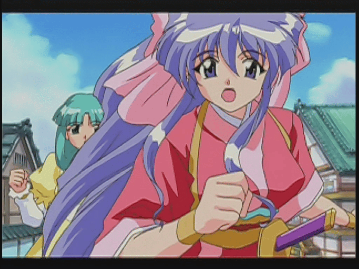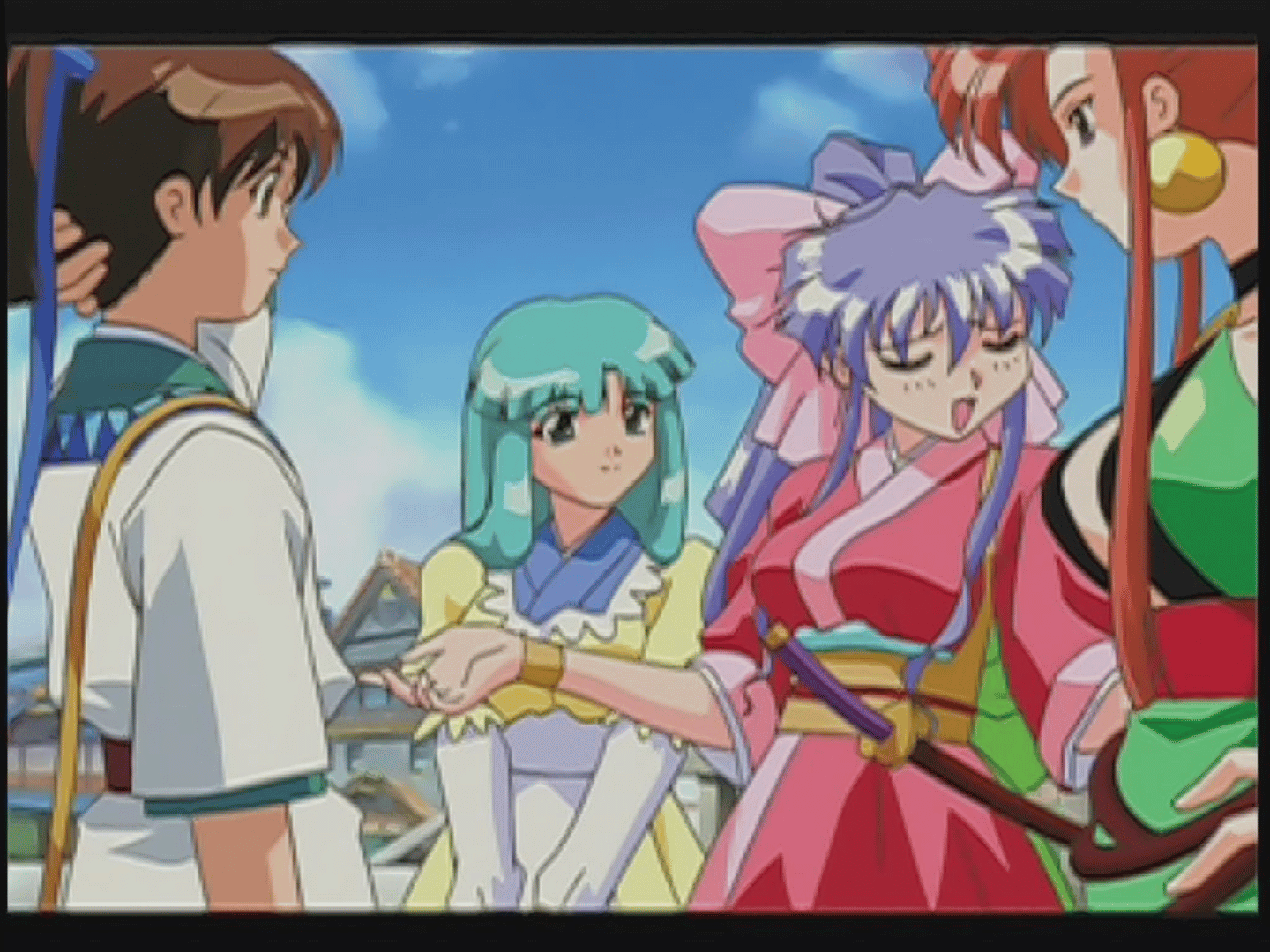 Dancing Blade is an anime FMV game. The player simply watches each scene as it proceeds; the only interaction is occasionally selecting dialogue choices when prompted. Depending on the player's choices, they will reach one of four different endings. Once an ending is reached, the scenario leading to that ending can later be replayed without interruption. Any scene already viewed can also be freely revisited.