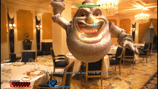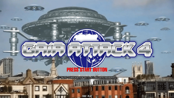 Gaia Attack 4 is a 4 player light gun shooter from Taito, released in 2010 and running on their Taito Type X2 hardware. Users play as 'Ghostbusters' whose goal is to kill as many ghosts and aliens as possible. The game features video footage of real world environments, overlaid with cartoon computer images of aliens, creatures and more.