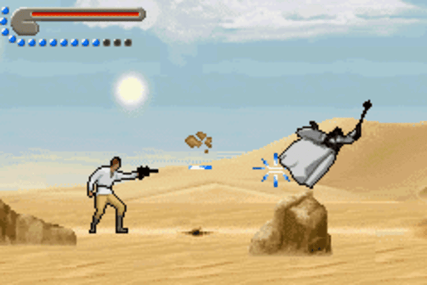For the first time, the legendary Star Wars movie trilogy arrives on Game Boy Advance. Players will experience the most exciting and memorable scenes from Star Wars: A New Hope, The Empire Strikes Back, and Return of the Jedi. Control Luke as he becomes a Jedi, fight Darth Vader and Boba Fett, escape from the fearsome rancor beast, and destroy the Death Star.