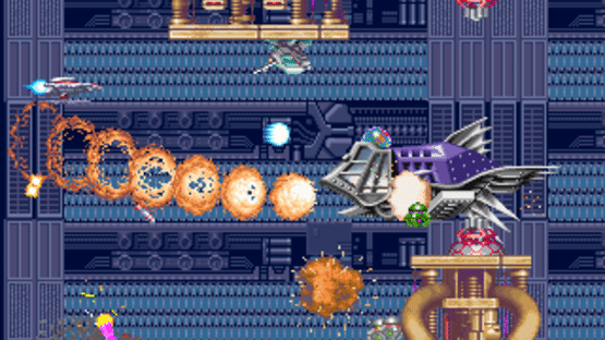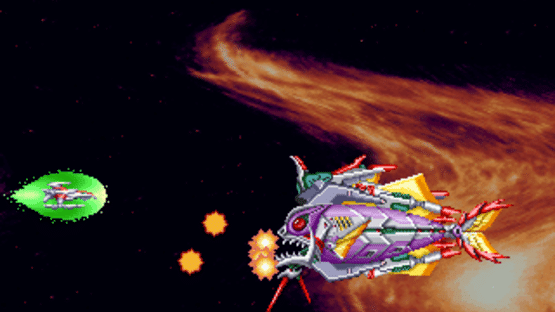 Darius Gaiden is a two-dimensional shoot'em up. The player controls a space ship named the Silver Hawk and must guide it through scrolling stages, destroying enemies and avoiding obstacles along the way. The ship is armed with forward-firing missiles, aerial bombs and a protective force-field, all of which can be upgraded by various power-ups that are dropped by specially-colored enemies when they are destroyed by the player. New to the Silver Hawk's arsenal in Darius Gaiden is the 'black hole bomb.' When fired, the black hole bomb will create a large vortex in the center of the screen, which sucks in enemies and projectiles on the screen for a short moment, until it explodes into a powerful ball of lightning that inflicts massive damage onto every enemy on the screen. Another feature introduced Darius Gaiden is the ability to capture minibosses, who appear in every stage. Each miniboss has a small, circular ball placed on them that, after receiving enough damage, will detach and float away, causing the miniboss to turn idle. If the player collects the ball, the miniboss will follow and aid the player. After a brief period of time, or the player loses a life, the miniboss will explode. A few months following release, update to the arcade version was later released entitled "Darius Gaiden Extra Edition". This version of arcade game contains rearranged levels, as well as automatically-enabled auto fire, two extra weapon power levels (bigger wave shot and a bigger red wave shot as well) and an all-stage mode which can be accessed by starting the game in 2P side.