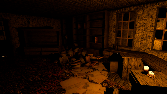 You begin to hear something in the distance, something moving in the dark. You search desperately for anything you can use but your candle begins to flicker. The flame goes out as you are left in complete darkness, you hear the sound enter the room.