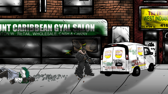 The game is a fictional single player shooter that takes place in the black communities of Toronto, Canada. Although taking place in real life locations, the gameplay is arcade-style in nature with infinite ammo and regenerating-health.