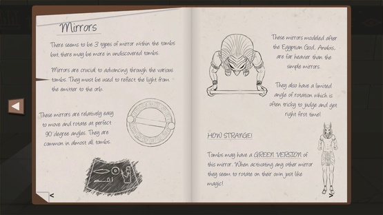 Mirrors is a strategy puzzle game where you play as an adventurer navigating your way through the tombs of ancient Egypt. By using the power of the sun you must direct light by reflecting it off various mirrors onto an orb which will activate the door into the next tomb. While doing this you must deal with a range of obstacles and traps that are in place to hinder your progress and keep you from reaching the Pharaohs treasure.