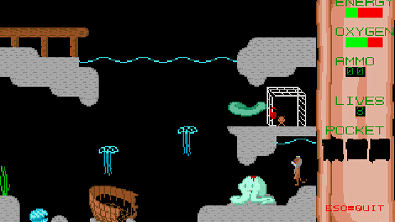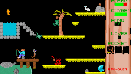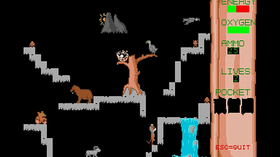 Abmis the Lion, King of the Beasts, has a problem: all of his kingdom's potatoes have been stolen, without which his citizens may starve! You control his navigation through a side-view platform maze avoiding animal hazards and collecting dropped potatoes, using objects you find along the way, all in pursuit of the foxy thief. Once all a level's potatoes have been collected, a magical door will open permitting access to the next level.