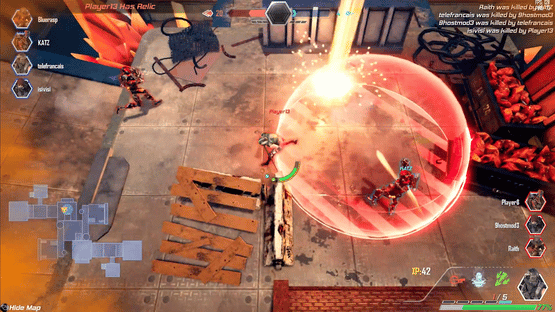 Relic Raiders is a top-down, team-based fighting game with a strong emphasis on tactical strategy and high-speed combat. Players band together in two teams (in either 2v2 or 4v4 matches) and are set loose on an asymmetrical map where they battle for control of the map's relic. Only one team can escape with the relic so strong team coordination, intelligent strategy, and mastery of character abilities are the keys to victory.