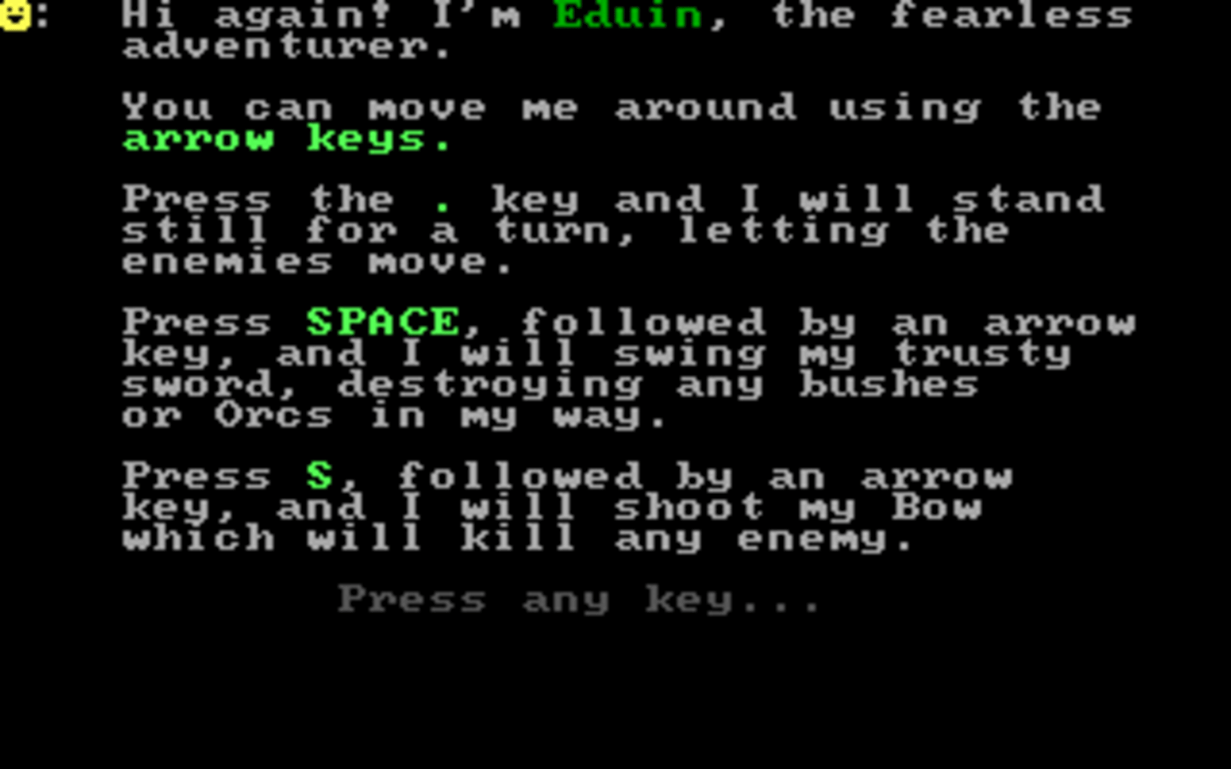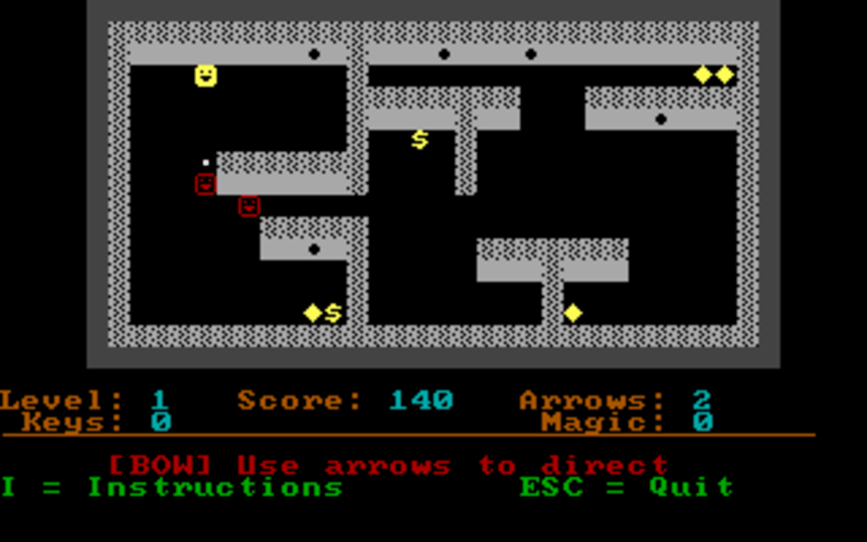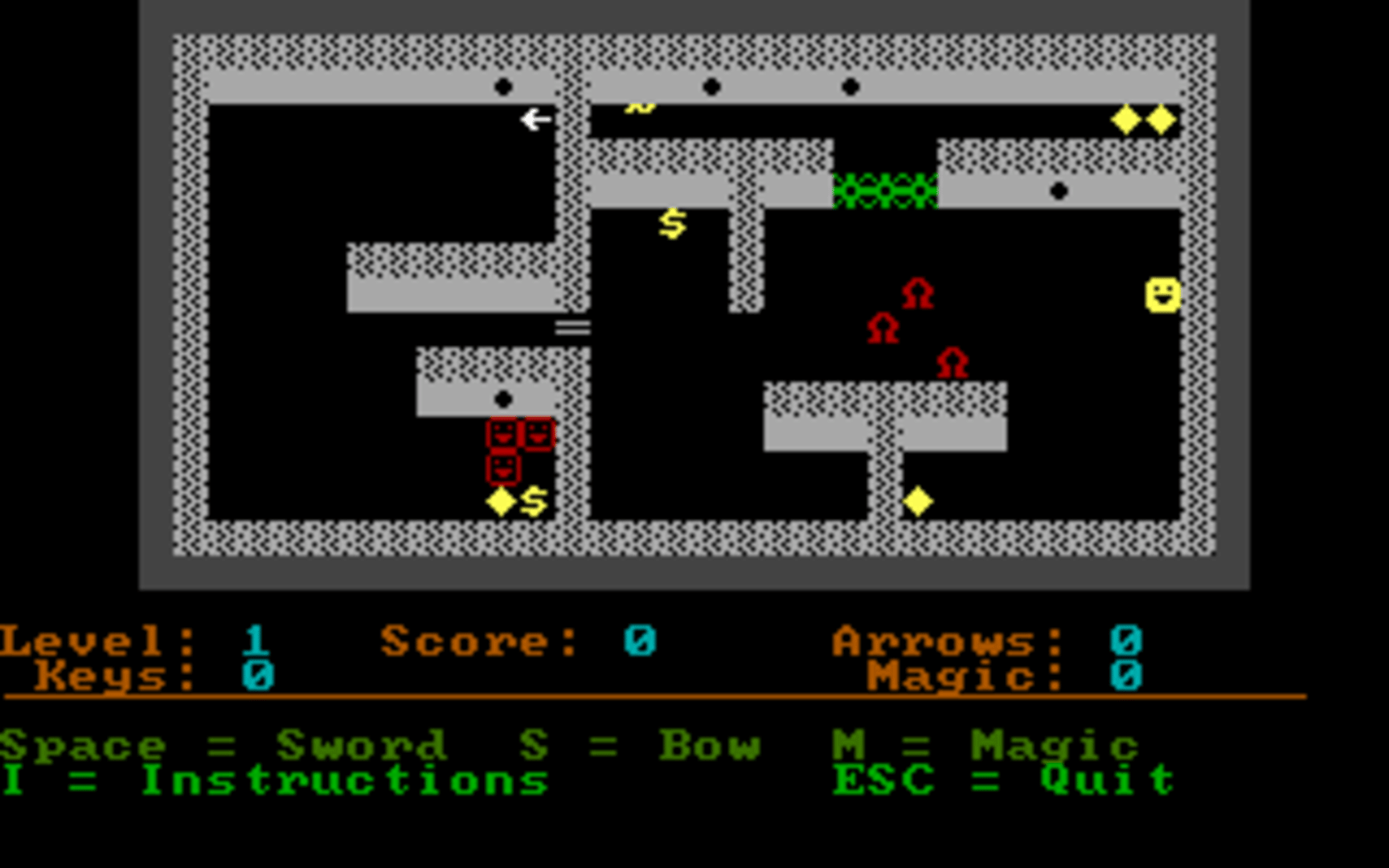 Dark Woods 2 is a top-down adventure game with graphics made entirely out of ASCII characters. The game world is divided into levels, which contain items that are needed to complete them, and enemies that have to be avoided or outsmarted. The game features 11 levels and the option to make/play custom levels.