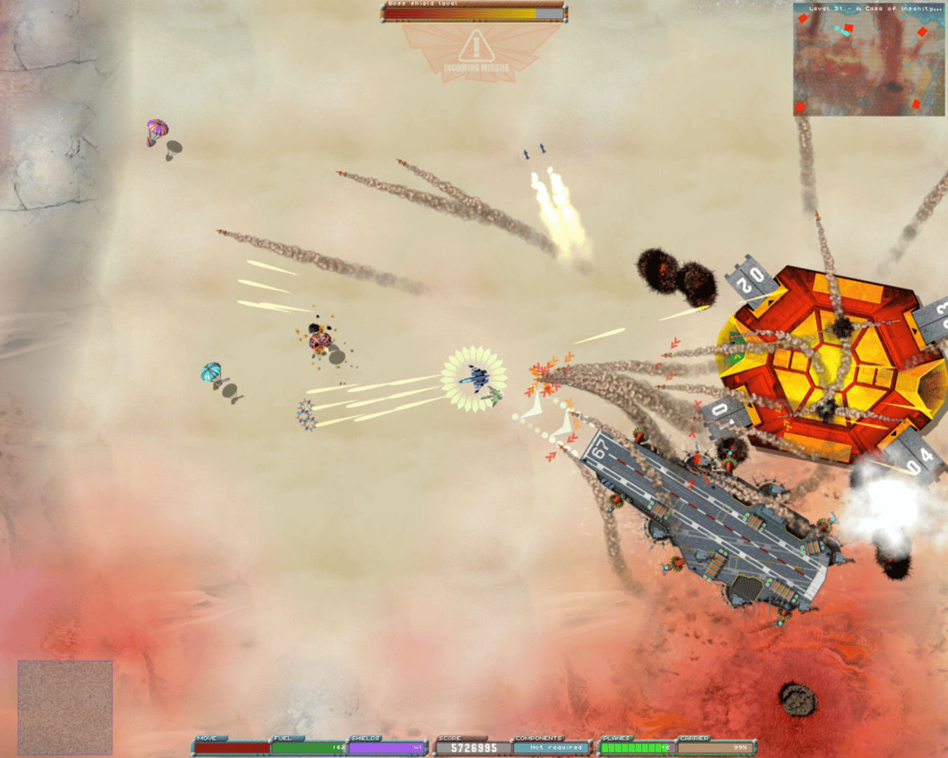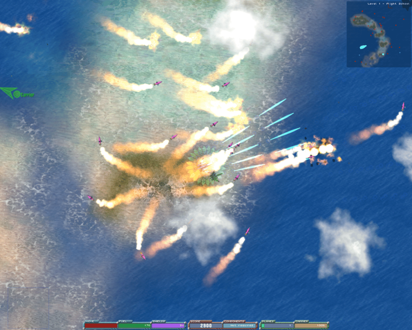 A classic birds-eye view arcade shooter where the player controls a selection of airplanes from WW2 propeller planes with machine-guns to futuristic jets with energy weapons, bombs and missiles. The goal is to blow up pretty much everything (planes, tanks, ground structures, blimps and the occasional boss) while chasing the evil Baron von Schtopwatch through time-warps across a storyline laid out in short comic-style cutscenes.