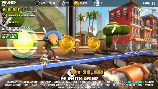 Arcade skateboarding meets fast-paced 2.5D platforming. Blast epic combos in endless procedural skating and 29 handcrafted levels. Over 1500 challenges and a billion clothing combinations.