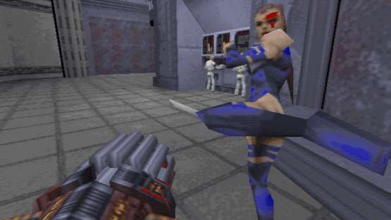 X-Men: The Ravages of Apocalypse is a conversion of Quake. The evil mutant Apocalypse has created an army of evil X-men clones. The only thing standing in his way is you, a cyborg created by Magneto with the ability to morph your arms into a variety of devastating weapons. In the single-player game, you battle clones of twelve X-Men across two episodes building up to a final confrontation with Apocalypse. The X-Men are realistically modeled complete with their mutant powers (the Wolverine clone, for example, will not stay down, imitating the original). In multiplayer game, you can take on the role of any of the X-Men for mutant deathmatch action in five original maps including the X-Men mansion.