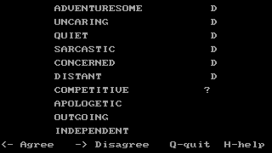 Mind Prober asks users questions to rate themselves or other people on a series of 23 adjectives (talkative, pleasure-seeking, etc.), computes the results, and prints a three-page report describing the person. The questions for users differ by gender (male or female) and age (under 18, or 18 and older). The program comes with a thick manual-plus-book that contains many chapters on how to better understand people around you.