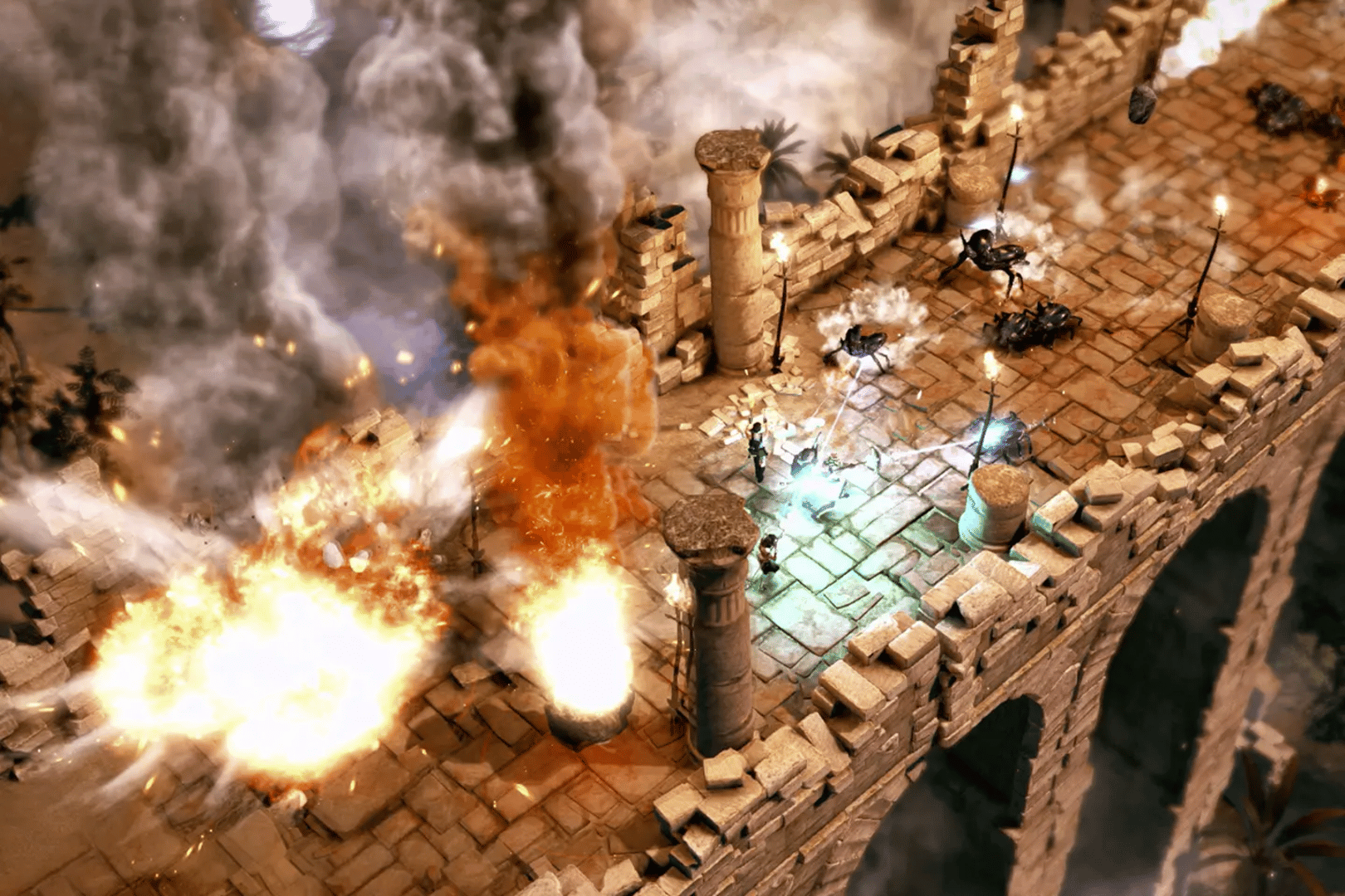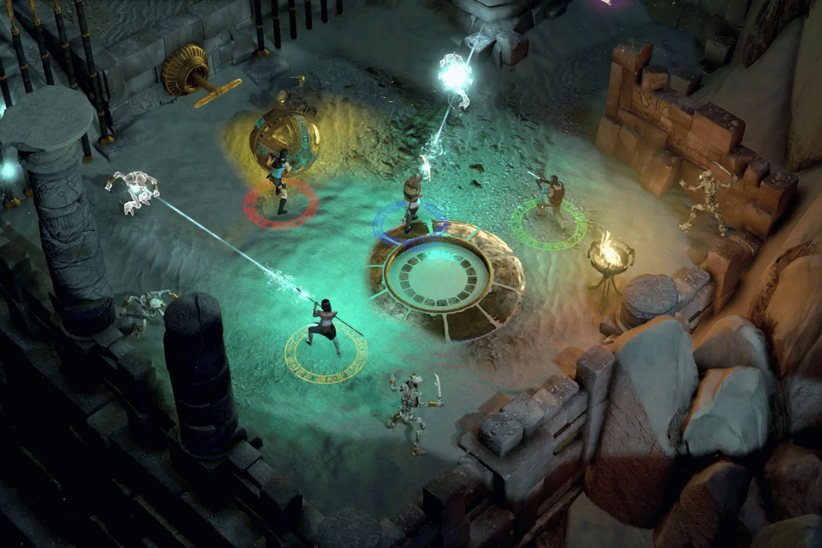 Lara Croft and the Temple of Osiris is the sequel to Lara Croft and the Guardian of Light, and the second game in a spin-off from the main Tomb Raider series. The two-player cooperative campaign from the first game is expanded to support up to four players. They need to work together in a platform environment to explore the temple, defeat hordes of enemies from the Egyptian underworld, solve puzzles, and avoid traps, using a high-angle perspective like the previous game. When playing together, the level lay-outs change to support cooperative actions.