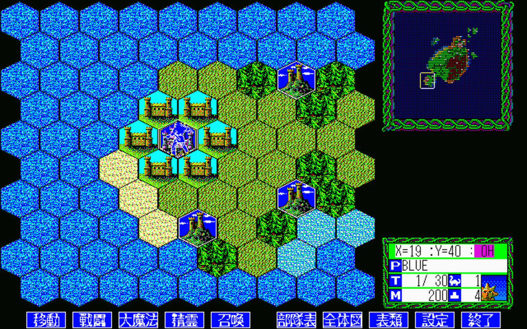 Master of Monsters is a turn-based strategy game in which you choose one of five different wizards and fight the other wizards for domination of the land that stands without a ruler after the master wizard's death. You can play in two campaigns against the computer which requires you to defeat the enemy wizards on all maps and allows you to take all units that have survived a battle into the next one. You can also play all maps individually with up two four human players. In battles, you can summon different monsters and cast spells. Which monsters you can summon and which spells you can use depends on which wizard you have chosen.