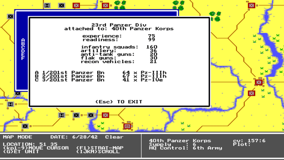 For the advanced wargamer, "Second Front: Germany turns East" is a division-level strategic game on a grand scale. The map extends from Berlin in the West to Stalingrad in the East, and covers the entire Russian Front. Players command over 150 German divisions and over 200 Soviet divisions, with asset information available to the individual tank, plane and infantry squad level.