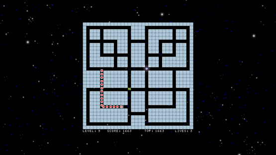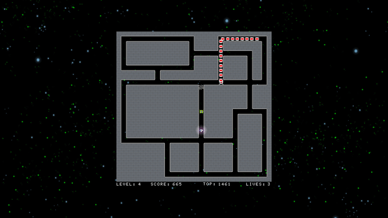 Remake of a video game for the Agat (soviet 8-bit computer, clone of the Apple II) The goal of the game is to evade the snake and to gain points by collecting crystals. Keep in mind that different crystals worth different amount of points. Every 200 points you move to a next level, every 1k points you get an extra life. There is a total of 20 levels, all different.