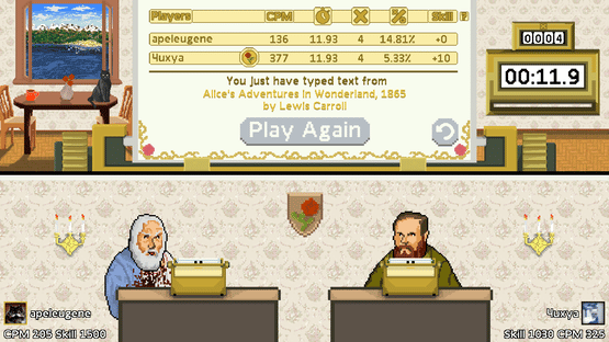Writers is a game where you play as a writer and try to be the first in typing random excerpt from the book. Fight against your friends or players around the world, make your way to the top and show them speed you are capable of. Become a member of Writer's club and master all language leagues!
