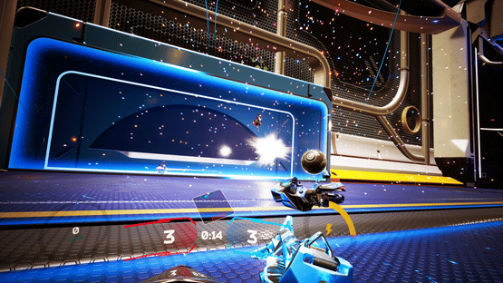 Snatchers is a futuristic VR eSport where players on hoverbikes snatch a ball with hook guns to score goals in a virtual stadium.