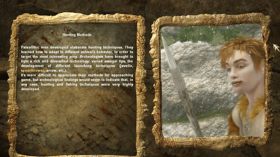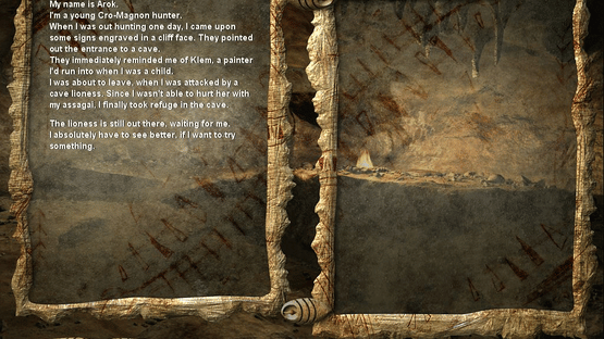 Secret of the Lost Cavern is another edutainment Myst-clone adventure in the tradition of old Cryo titles. This game attempts to take us to the Prehistoric Age. The storyline revolves around the famed Lascaux Caverns of France, where our direct ancestors, the Cro Magnon humans, have left a significant legacy of wall paintings. The hero, Arok, is a young hunter/gatherer who is more interested in painting, however. He soon discovers that he can influence the world around him by painting on the cavern walls, as he searches for a mysterious mentor.