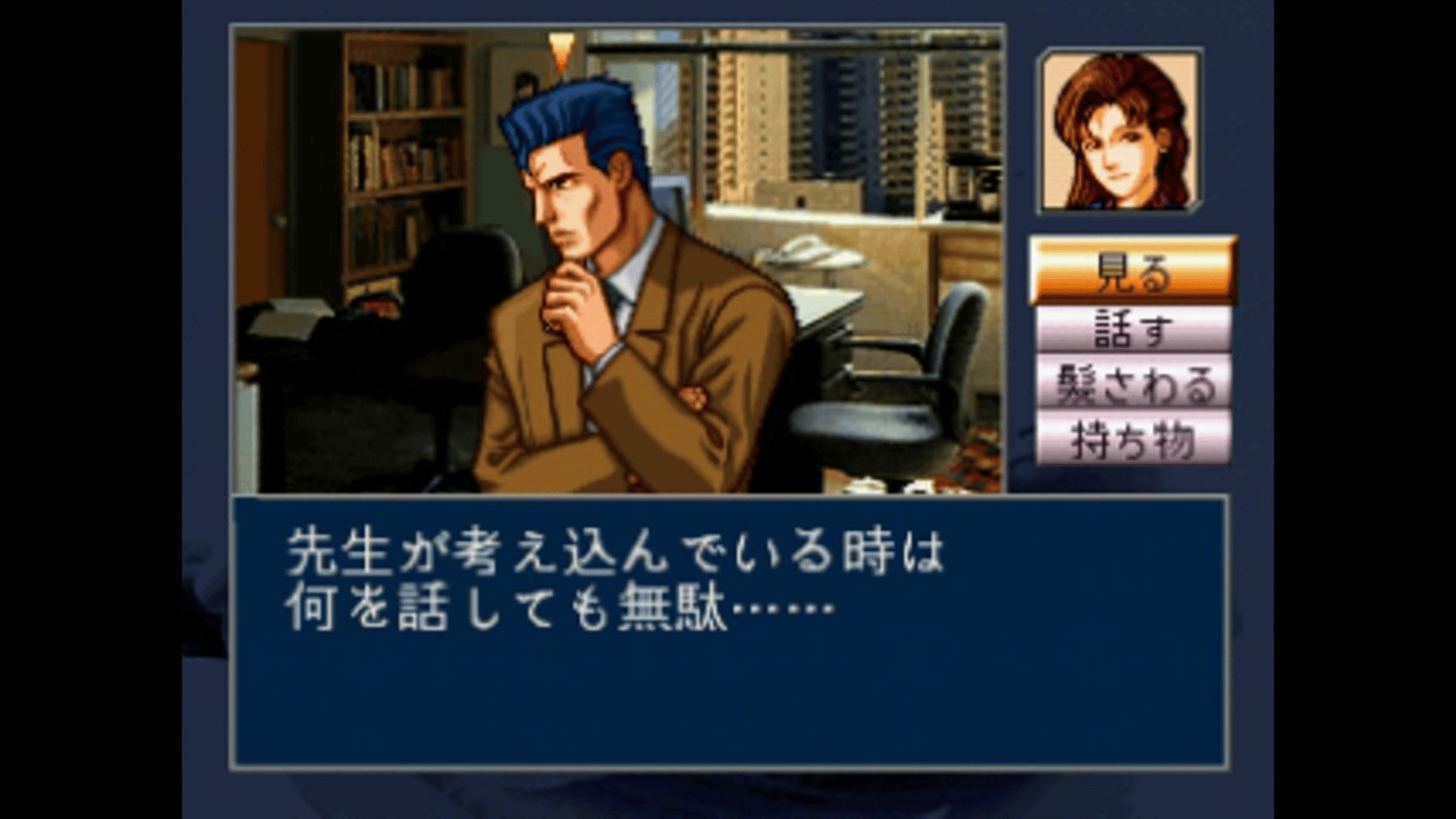 Tantei Jingūji Saburō ~ Mikan no Rupo is a Japanese style adventure game in the detective/mystery genre. It is the 5th game in the Jake Hunter / Tantei Jingūji Saburō series, being released between Toki no Sugiyuku Mama ni... (1990) and Yume no Owari ni (1998). While following the same formula of the previous titles, the game features a "Zapping System", allowing the player to see the story from the perspective of other characters as well as Jingūji. Also featured in this title is car chase and following suspects in the form of 3D mini-games, although these features would rarely be seen again in future releases.