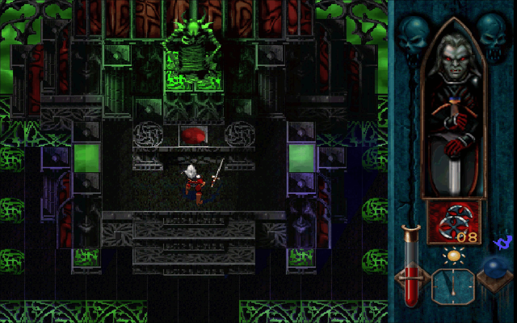 Blood Omen: Legacy of Kain is a top-down action-adventure video game with role-playing game elements. It is the first game in the Legacy of Kain series, and the only one developed by Silicon Knights and published by Crystal Dynamics. The game was first released in 1996 for the PlayStation, and later ported to Microsoft Windows. A Sega Saturn version was announced during production but later cancelled before release. It was followed by four sequels, which were all developed by Crystal Dynamics and published by Eidos Interactive.