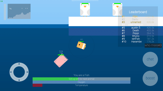 Deeeep.io is a game about evolving from small animals that live in the sea and you eat meat by killing or snatching other people, or bottom-feeding algae and such to evolve to greater animals and score.