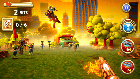 Get ready to meet and defeat legions of zombies all over the world at the end of days. Use a highly diverse arsenal of weapons - modern, laser, explosive and more - to take care of the hilariously dumb Z's before they bite you for good! Earn more and more bucks each given day to upgrade your weaponry and supercharge the power ups to have the greatest zombie busting time ever in your life!