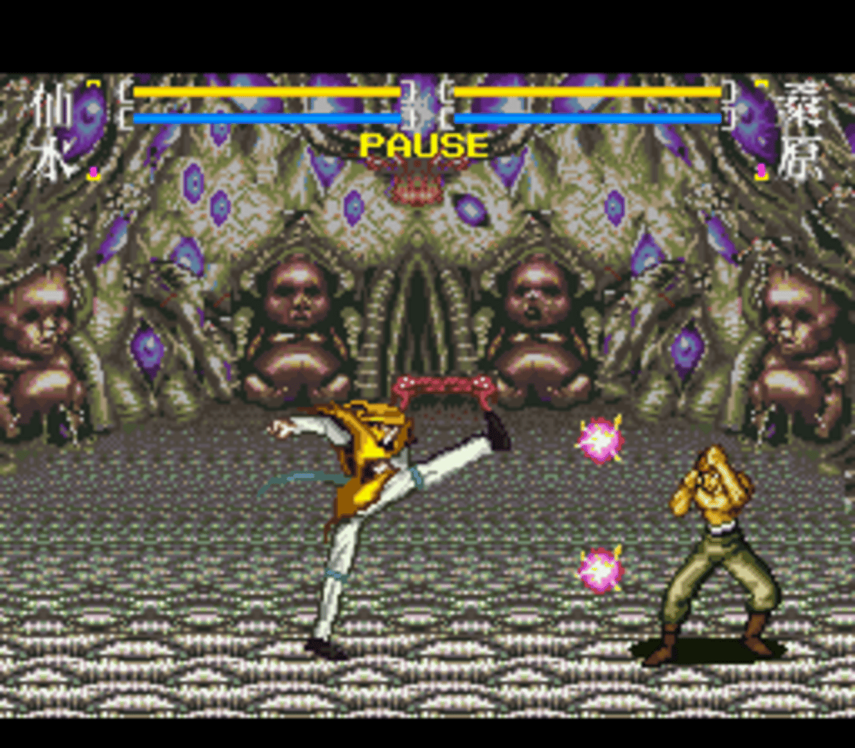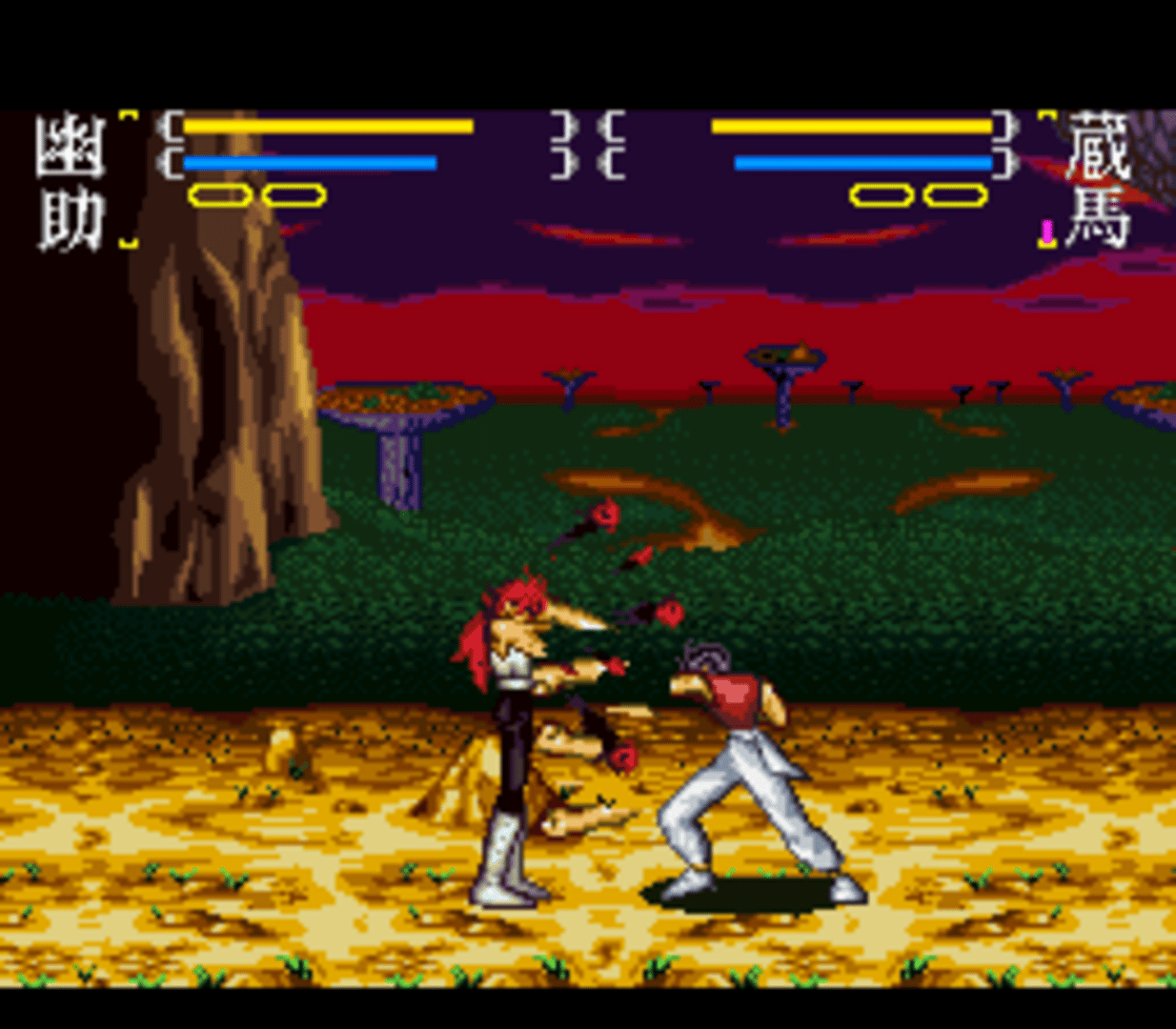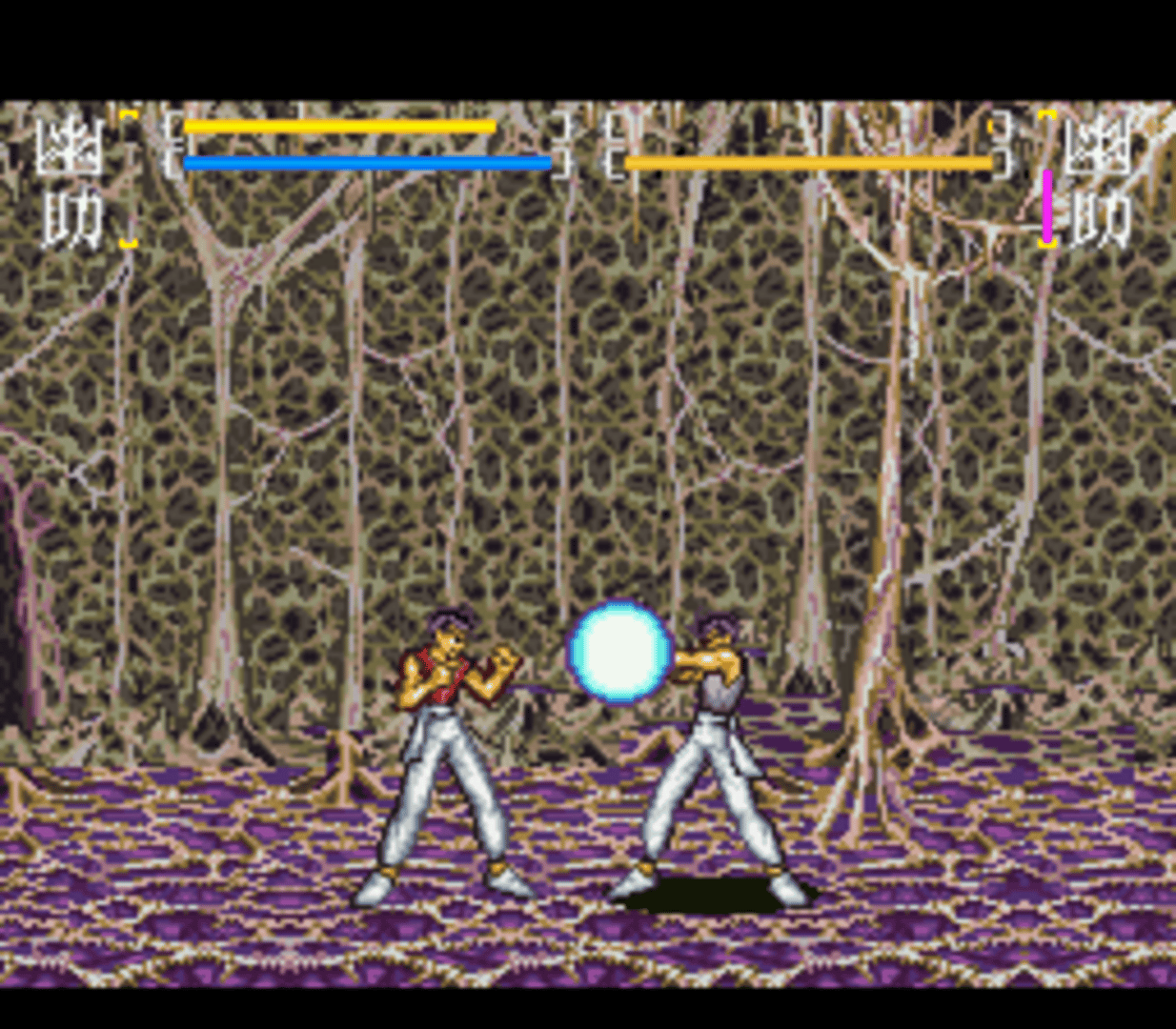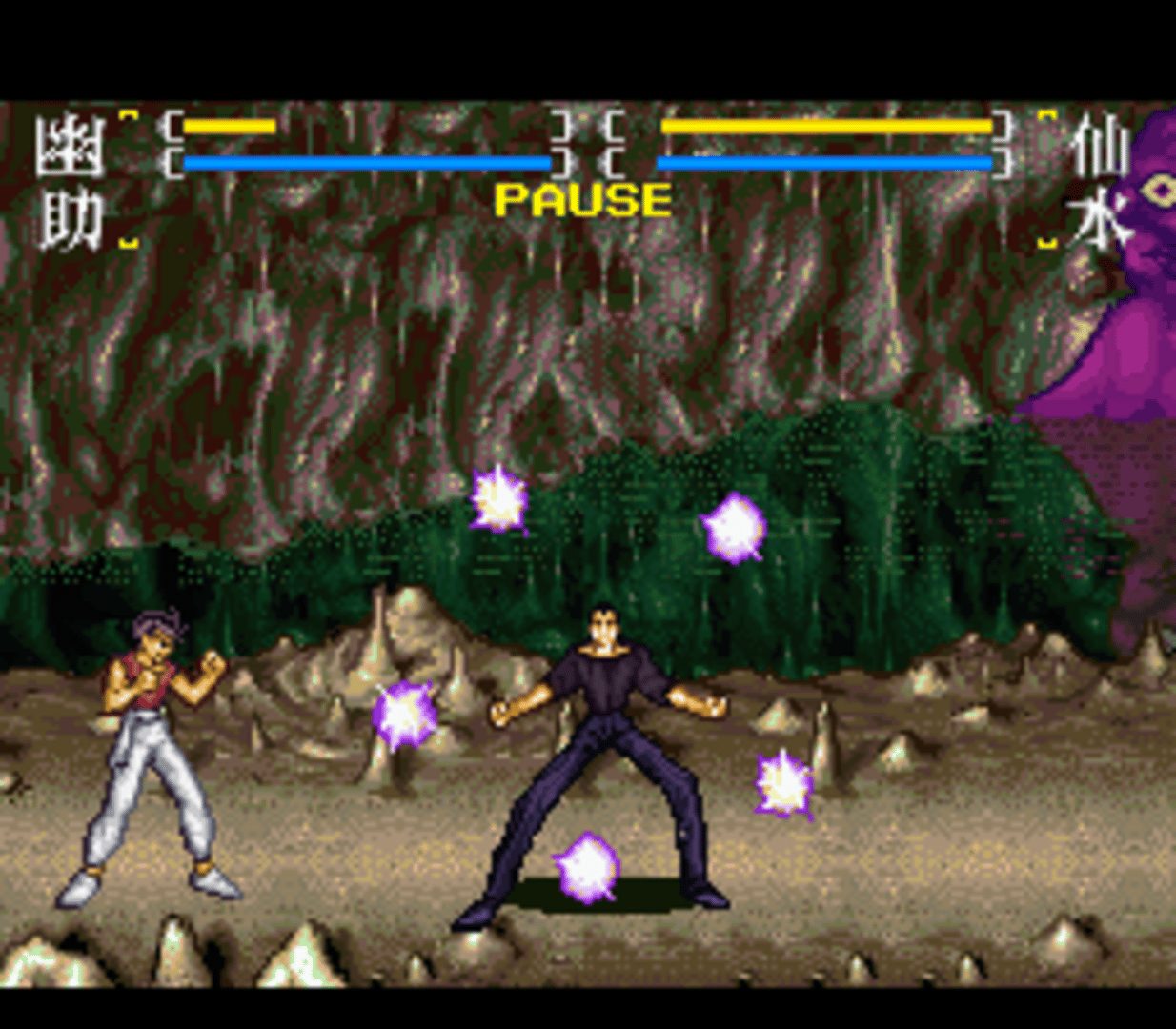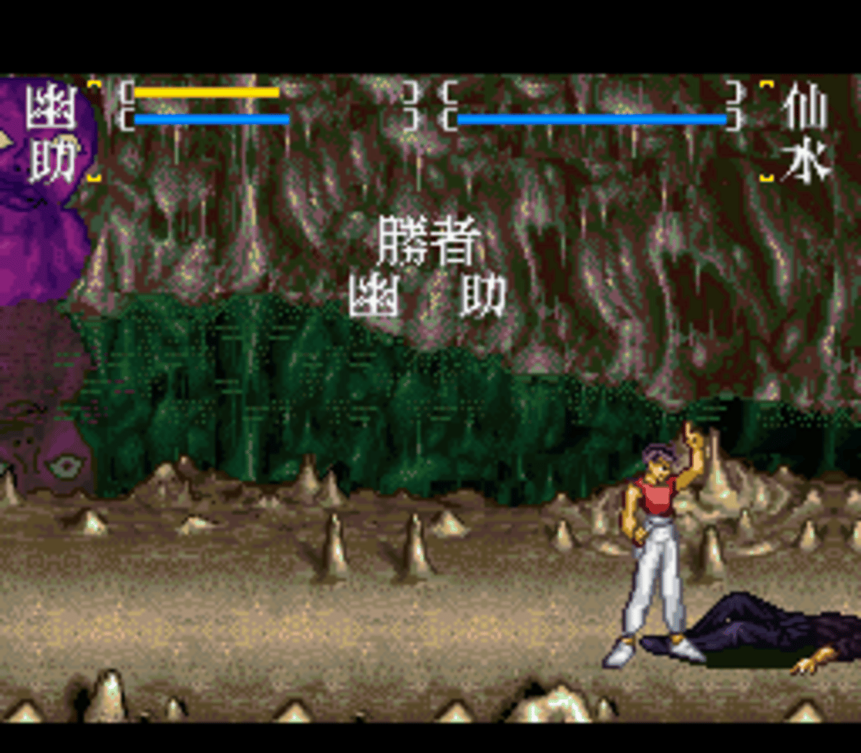 Yū Yū Hakusho Final: Makai Saikyō Retsuden is a 2D fighting game based on the Yu Yu Hakusho anime. The game features storyline & characters from season 3 & 4 of the anime. 13 Characters are available (Yusuke, Kurama, Kuwabara, Hiei, Sensui, Super Sensui, Shigure, Shura, Demon Yusuke, Demon Fox Kurama, Raizen, Yomi, Mukuro) and one extra hidden character Yakumo (The main antagonist in "Yu Yu Hakusho the Movie: Poltergeist Report") can be unlocked by entering a secret code. The player can choose among the various game modes (Story Mode, Demon world tournament, Elimination Match, Team Battle, 2 Player Battle) and a training mode in which player can train for unlimited or limited energy and can also select the location for the fight. Each character has 2 styles of punches and kicks (Light and Hard) and can perform special moves upon a specific input which can also be viewed before the starting of a fight.