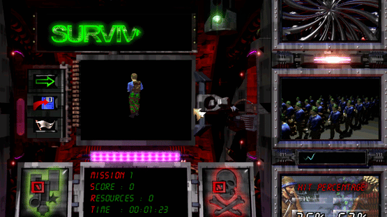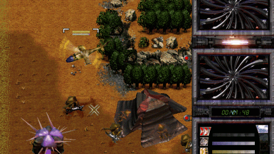 This RTS (real-time strategy) game tells the story of a futuristic war between the humans and the inhabitants of Jupiter (Jovians). The player can choose to command the armies of either side. Humans and Jovians have different menu layouts and tactics which they can employ for offensive and defensive actions. Also, the Jovians must deal with the atmosphere of the Earth, which obstructs their view, by using special troops; the humans also face a problem in the sulphur shrouds of Jupiter. The game implements its own view system for battles. Some may know it from their TV's - there's a picture-in-picture option to view 3 different locations at the same time. You can choose from two modes of play, normal RTS, or a more complicated variant which is just playable if you're confident with the manual.